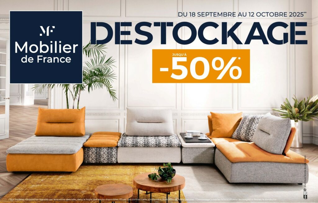 Jusqu’au 12 Octobre c’est le GRAND DESTOCKAGE chez Mobilier de France. Canapés, meubles, tables et chaises : c’est le moment idéal pour vous offrir le mobilier de vos rêves. Venez vite profiter des meilleures affaires !