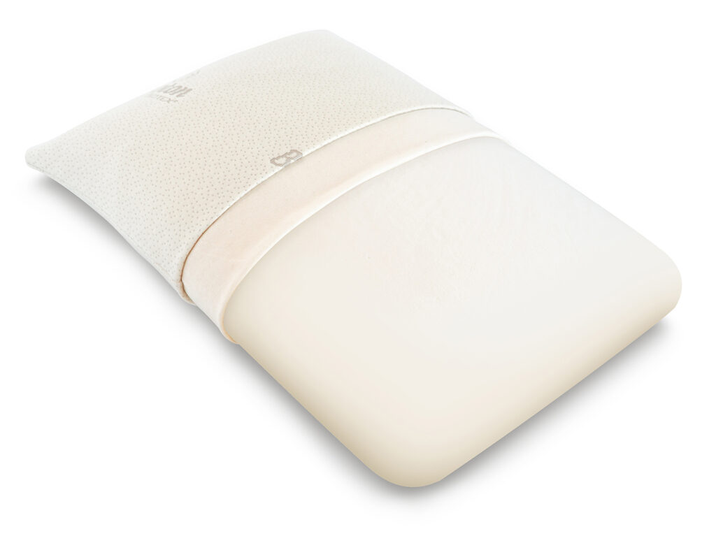 Essayez également l’oreiller CERVISCO, légèrement échancré sur un coté pour plus de confort. Il est disponible en confort medium et en épaisseur standard (11.5 cm), ou extra-plat (épaisseur 6.5 cm seulement) :