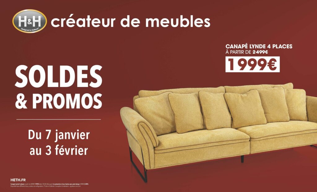 Venez vite profiter des prix SOLDES et des PROMOTIONS sur une sélection de canapés, tables, chaises et meubles HetH à Sicomob.