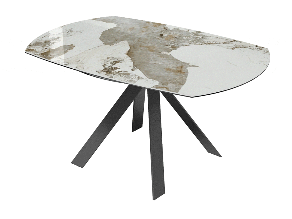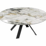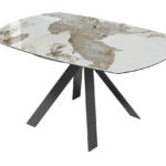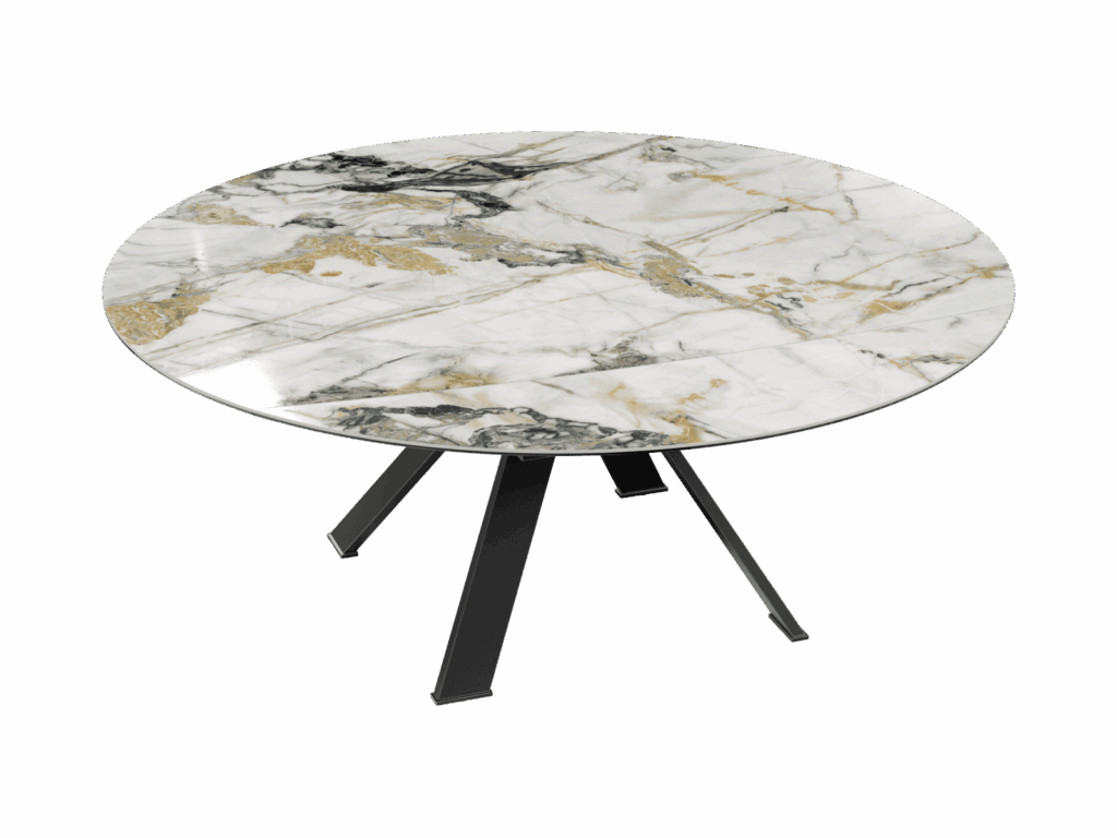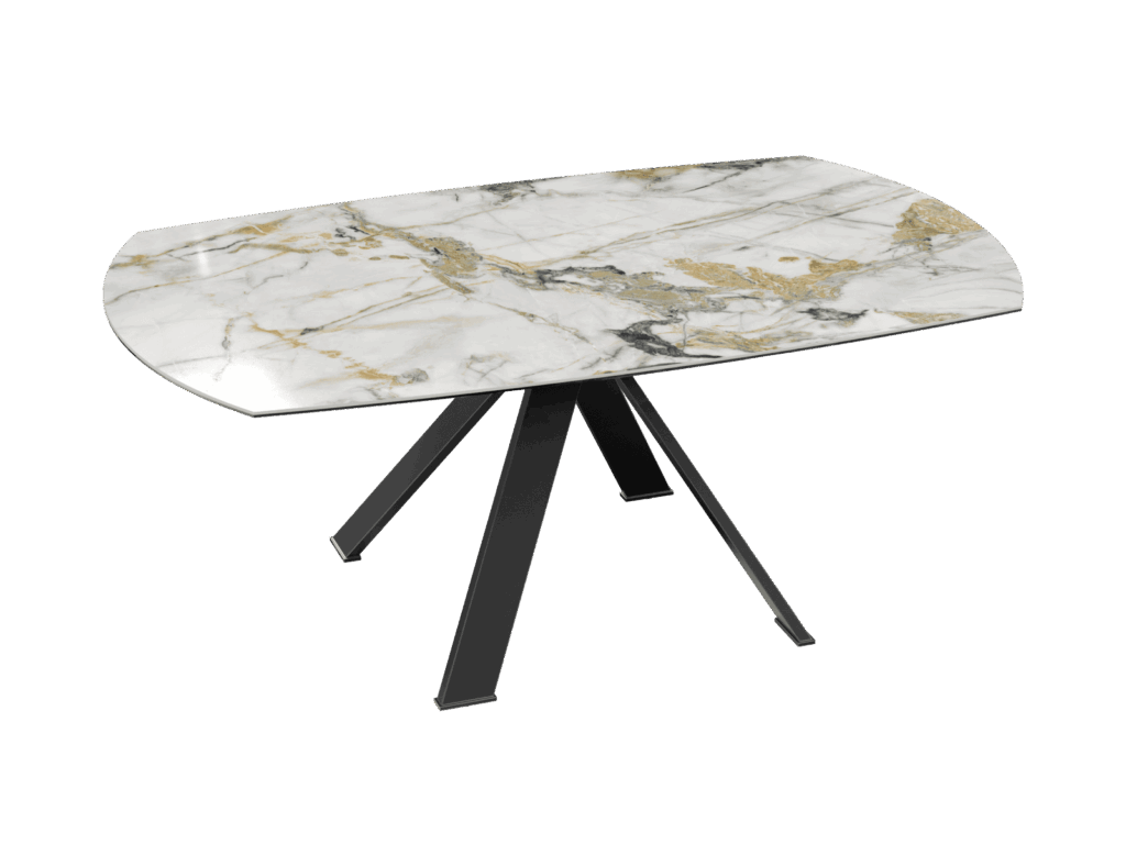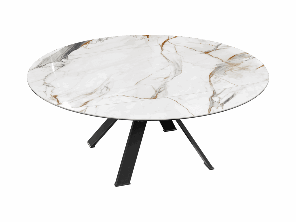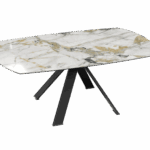 La table GRANDE AUSTIN est une table de salle à manger extensible qui associe un plateau en céramique haut de gamme à une structure métallique contemporaine.