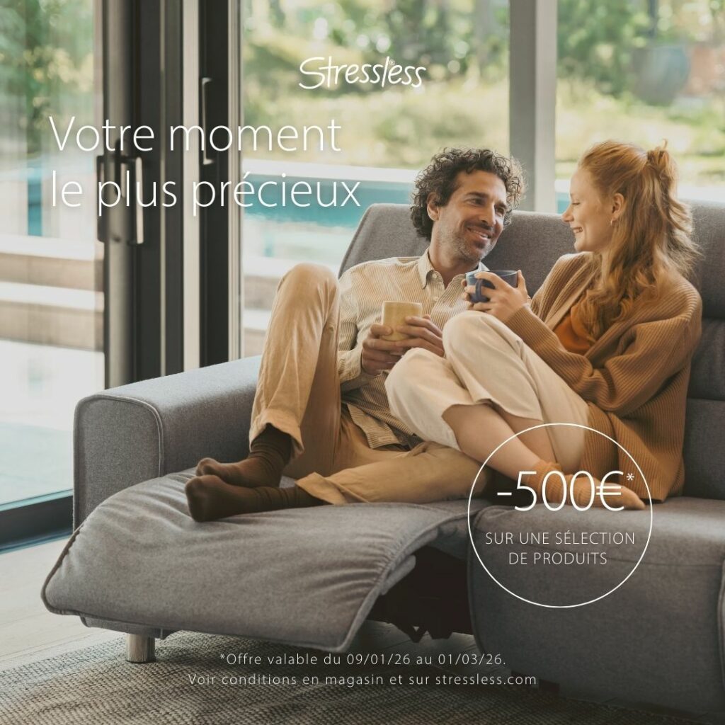 Les promotions Stressless d’hiver vous attendent à Sicomob, sur une sélection de fauteuils, canapés et chaises, du 9 janvier au 1er mars 2026